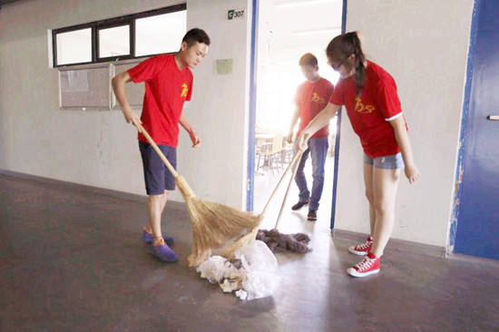 本次活动开展前,播音主持艺术学院教育主任赵玉丹发言,介绍美化校园的意义,希望学生积极参与此次活动。参加“美化校园”活动的学生身穿院服,在活动负责人的带领下,拿着事先准备的扫帚、抹布、垃圾袋等卫生工具仔细耐心地打扫每间教室。下午5点30分活动结束,在活动过程中,学生不怕累,不怕脏,自觉地遵守团队秩序,发扬了吃苦耐劳的精神。