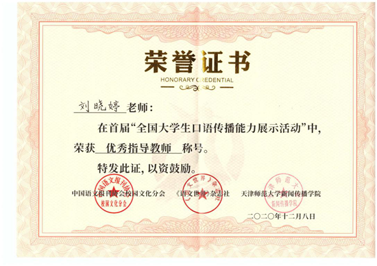 学生们满载而归,老师的幕后付出也得到认可。播音学院播音系专业课教师刘晓婷荣获“优秀指导教师”称号。作为承办方,我校播音主持艺术学院荣获“优秀组织奖”。