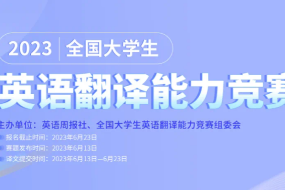 为贯彻落实教育部《关于加快建设高水平本科教育全面提高人才培养能力的意见》等文件精神,激发大学生学习英语的兴趣,促进大学生英语翻译能力发展,为全国在校大学生提供展示英语翻译水平和能力运用的舞台,特举办2023年全国大学生英语翻译能力竞赛。