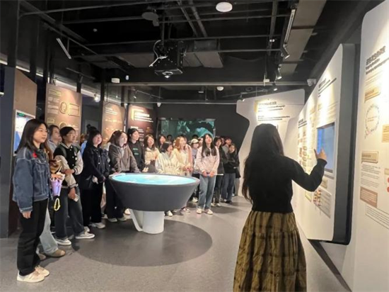 2023级同学们在博物馆工作人员的带领下参观和学习世界语言博物馆,博物馆以语言学基础理论为框架,遵循语言自身发展的规律,按时间脉络划分为溯源、倾听、演说、书写、教育、传播、服务及探索八个部分。从历史到现状再到未来,全面呈现语言的各个方面。