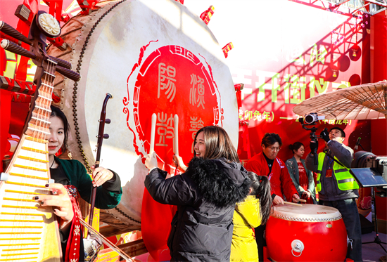 领导嘉宾和热心群众敲响幸福之鼓,共迎吉祥龙年