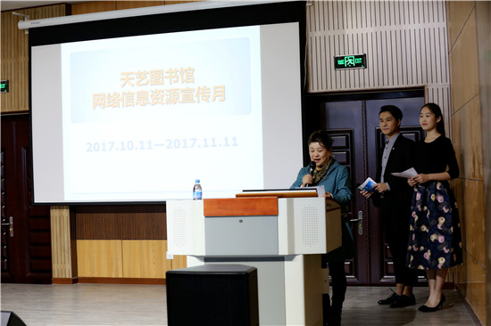 2017年10月12日,天津体育学院运动与文化艺术学院“网络信息资源宣传月”活动开幕式在图书馆报告厅举行。副校长李晓华,教务处处长萨其尔、科研处处长王燕、图书馆馆长王在清、新闻网络中心主任席建良、音乐学院院长王艳荣、团委书记王月芹,各学院教育主任和教学助理以及学生代表出席了本次活动。