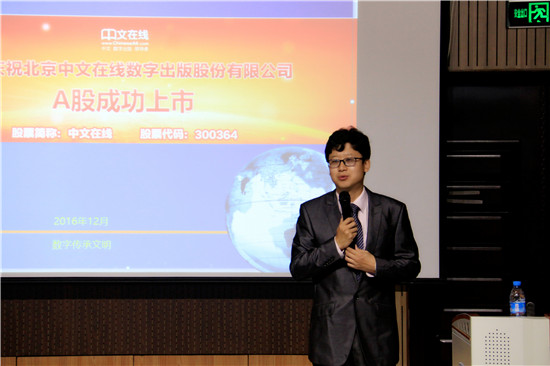 之后,新闻网络中心主任席建良致辞。席建良主任表示:“我校网络中心、图书馆、中国知网和中文在线紧密配合,逐步完善丰富我校网络信息资源,为我校师生提供更加完善的服务,新闻网络中心在今后的工作中,全力支持图书馆数字资源的建设。”
