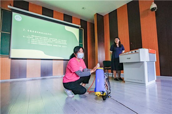 会议首先由宿管中心主任刘美娜重申了宿管员、保洁员的岗位职责和绩效考核。随后,由保卫处消防科于胜国和天津君安消防工程有限公司安全主管张玉海对宿管中心全体员工进行消防安全培训。最后,由徐娇老师为全体宿管员和保洁员进行疫情防控安全培训。