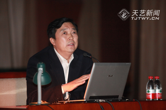 交流讲座主要以李罡院长走访美国各个城市为主线,通过从不同的视角、方位解读其各城市的音乐、文学、影视、戏剧、体育、经济、科技等有着美国特有象征的代言符号,洞察其国家共同的文化、教育及社会现象,深刻揭示、反映美国的文化、教育理念、体制;并通过以上客观地折射出我国目前的文化、教育,尤其是高等教育所面临的人才培养与社会接轨和社会发展等问题。国家文化要强大,即是教育需要强大并国际化;如何在面对中国文化趋向于产业发展时,即时地培养出研究型、应用型的创意型人才,正是当下高等院校的己任、职责;作为高等院校教育、教学的一线教师,又该如何认识和梳理对文化产业发展的认识,调整各自的教育、教学思路和理念,营造大学该有的人文气质、氛围和意识,是值得天艺、北音每位教职员工深思熟虑的。