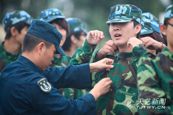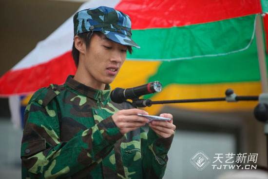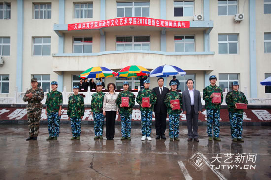 9月21日上午,天津体育学院运动与文化艺术学院(以下简称天艺)2010级新生军训阅兵典礼在北京市某部队操场如期举行。全体2010级新生身着戎装在雨中接受了我院李罡院长和昌平区某部队领导们的检阅。同学们整齐的步伐、响亮的口号和潇洒的军礼,博得了在场领导们热烈的掌声。