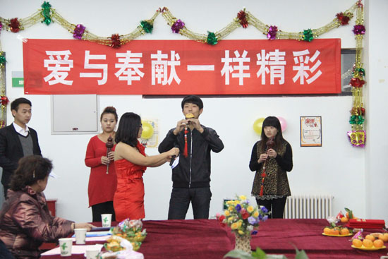 会议表彰了10名最佳读者和16名优秀志愿者。王军院长、魏堃副书记、陈红副院长等领导为优秀志愿者和最佳读者颁发了证书。随后,图书馆的读者们、志愿者们表演了诗歌朗诵、小品、乐器演奏等精彩的节目。领导们也上台与同学们合唱了一曲《难忘今宵》。