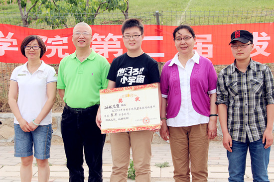 传媒学院院长李丽娜及艺术管理系主任彭涛为获得冠军的集体颁奖