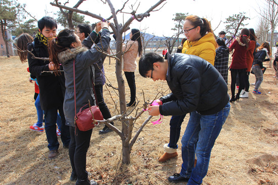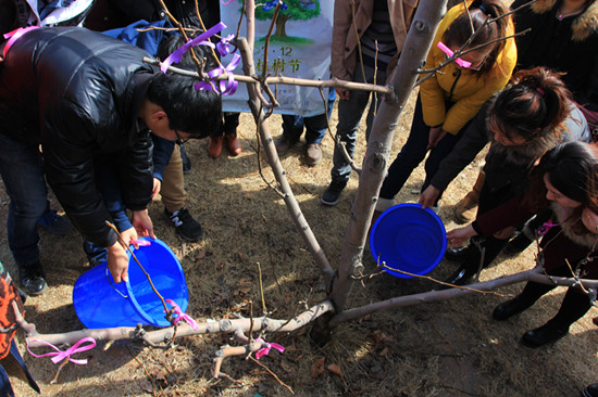 本次植树节活动包括三项活动,第一是为影视学院各个办公室送上盆栽,给办公室添一抹绿意,让老师们在办公时保持良好的心情。第二是让同学们为校园的树木浇水,从而提高同学自身对校园树木的责任感,主动保护关心校园树木。第三是为同学们发送彩色丝带,绑在树上,寄托大家对校园树木的祝愿。