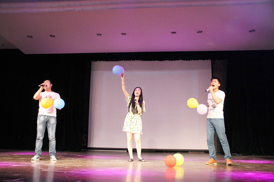 学生和教师共同演唱歌曲《给所有知道我名字的人》,现场互动引发全场欢呼;教师三人演唱的《当》更是调动全场观众情绪,观众配合教师的演唱挥动自己手中的荧光棒,就在教师和观众共同演唱的时候,精心制作的PPT跃然屏上,展现大一到大四的历程。随后播放的视频中有所有毕业生的照片,还有大家对戏剧学院三周年的祝福。