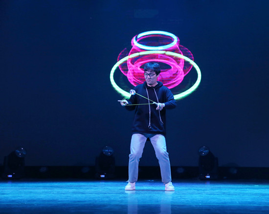 《refiection》舞蹈热情奔放火辣,在场的每一位观众都感受到了青春的活力,Showdance街舞健身工作室的同学们尽情的释放着他们青春荷尔蒙;《lazer beam》由手部极限运动社选送,炫酷而又刺激的悠悠球表演,引得同学们阵阵尖叫;天艺朗艺团为大家带来朗诵《燃烧吧!青春的火光》,六名大一的小鲜肉再一次让大家感受到青春的魅力与激情,他们将在天艺的艺术海洋里燃烧青春;舞蹈学院团总支选送的节目《科尔沁之心》,展现了科尔沁草原上独有的艺术表现形式,表达了科尔沁人大爱大勇的民族精神;一曲《共筑中国梦》,以恢弘的气势展现了梦想的伟大,让“中国梦”深入人心,音乐学院团总支寓教于乐,教育青年学生弘扬中国精神,传播中国价值,凝聚中国力量。