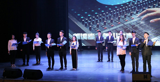 盘山之声广播台选送的节目《盘山之声里的朗读者》,将青春、信仰、爱国与感恩娓娓道来,他们向同学们讲述了我校法布瑞广场名字的由来,深切缅怀法布瑞·佩里扎罗教授;歌颂了音乐学院齐洪老师的爱人赵力士教授将他积攒一生的珍贵资料都捐献给学校的动人故事;当讲到我校黄东苑老师的感人经历时,老师和同学们的眼中饱含泪水。天艺话剧社以默剧《致敬卓别林》的独有方式表达了同学们对表达大师卓别林的尊敬与爱戴;音乐学院团总支选送的节目《红旗飘飘》,歌颂了祖国的繁荣与昌盛,现场的同学们与歌手热情互动,大讲堂里又泛起了漫天的“星光”;曲艺社选送的节目《论捧逗》,将晚会带向了高潮。他们在台上口若悬河、妙语连珠,台下上百位观众,笑声不断,掌声不绝;动漫社选送的节目《流星群mebeor stream》,动作惟妙惟肖,每一个动作都显示出他们的可爱纯真;音乐社选送的节目《致林俊杰》,表达了同学们对偶像林俊杰的敬爱;蒙舞《希格希日》,让大家再一次感受到草原的广阔壮美,也将晚会拉近了尾声。
