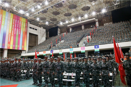 2019年9月2日,我校2019级新生军训开营仪式在综合馆隆重举行。