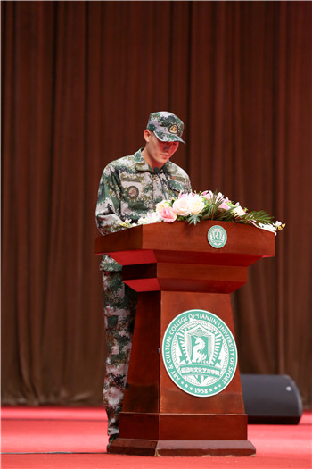辅导员代表奥卓琰表达了对同学们的殷殷嘱托:“同学们在思想上、行动上都要以军人的标准来严格要求自己,以服务国防、保家卫国的信念武装自己,培养职业军人的行为规范、思维方式和气质作风。希望同学们上好军训这堂课,习得良好的团结协作精神,把小我融入到大我之中,在青春的征途上不断奋斗起航。”