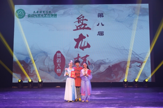 展现青春风采,舞动梦想舞台,2019年4月9日,天津体育学院运动与文化艺术学院第八届“盘龙杯”舞蹈大赛决赛在大讲堂音乐剧场精彩上演。莅临现场的领导和评委嘉宾有:北京现代演艺集团总经理孙羽郎,天津体育学院运动与文化艺术学院副校长陈红,副校长、舞蹈学院院长马斌,天津盘山旅游局、天津山水盛典文化发展有限公司、天下盘山总导演鲁杰,执行导演赵一霖,国家艺术基金音乐剧《天地运河情》执行导演郑丽娜、范宇鹏,舞蹈学院院长助理、编导系系主任陈文童,表教系系主任焦姣,国标系系主任佟世宇以及舞蹈学院专业教师。流光溢彩,燃烧激情,天艺学子们用优美的舞步在舞台上尽情展现着自我风采。