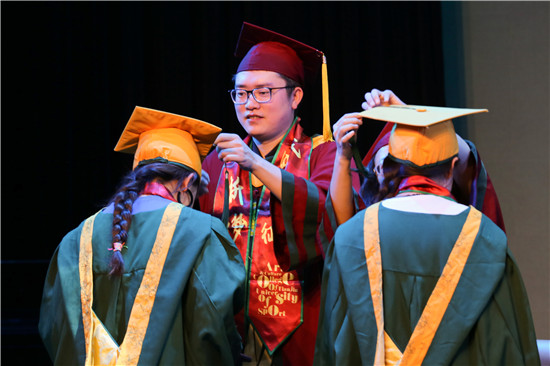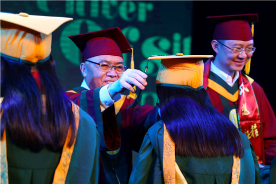 副校长马斌为2018届毕业生授予学士学位证书并拨穗