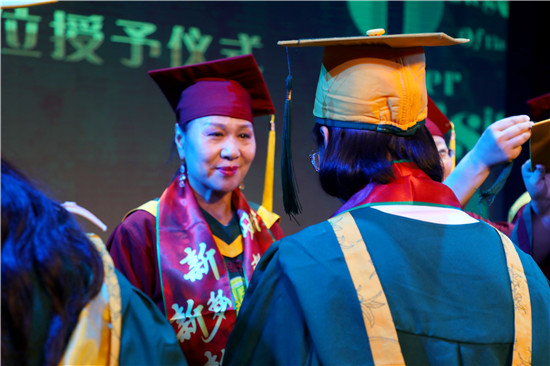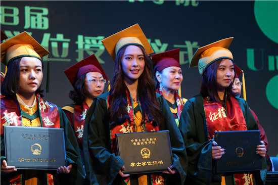 常务副校长李晓华为2018届毕业生授予学士学位证书并拨穗