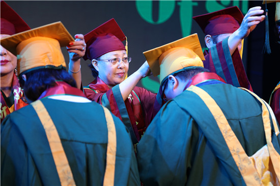 副校长王素珍为2018届毕业生授予学士学位证书并拨穗