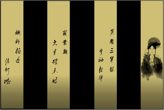 四美图部分,根据各个年代美人历史背景,勾勒出栩栩如生的四美图。再用动画效果一层一层递进而来,如同何生作画场景一一浮现在观众面前,达到美轮美奂震撼视听的效果。