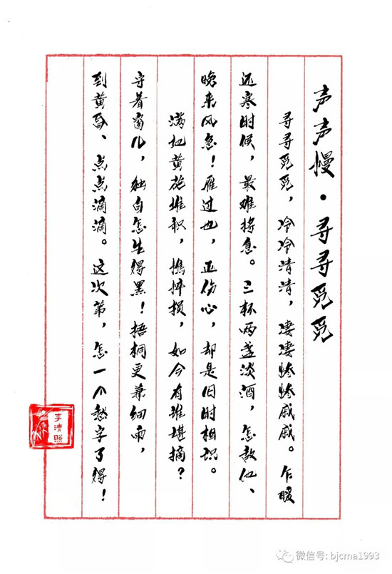 2020年李罡校长对于这首词进行了新的谱曲,而在这首《声声慢·寻寻觅觅》中,他没有用多么华丽的配乐,没有和声的铺垫,而是一个人,徐徐缓缓的唱出心里的那份情,愁。