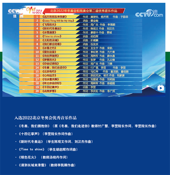 我校师生创作的六首音乐作品入选北京2022年冬奥会优秀音乐作品